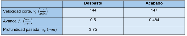 Si nuestro material fuera un acero inoxidable 304, grupo M según ISO