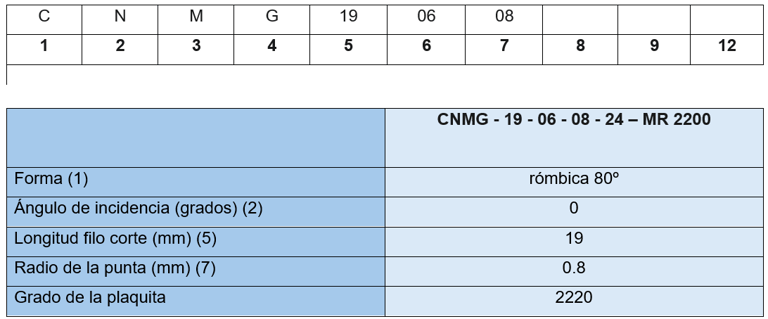 La plaquita que nos muestra la aplicación es CNMG19060824 – MR - 2200