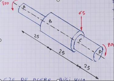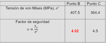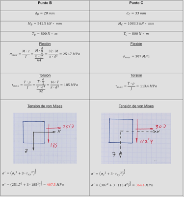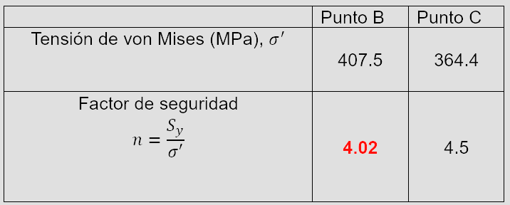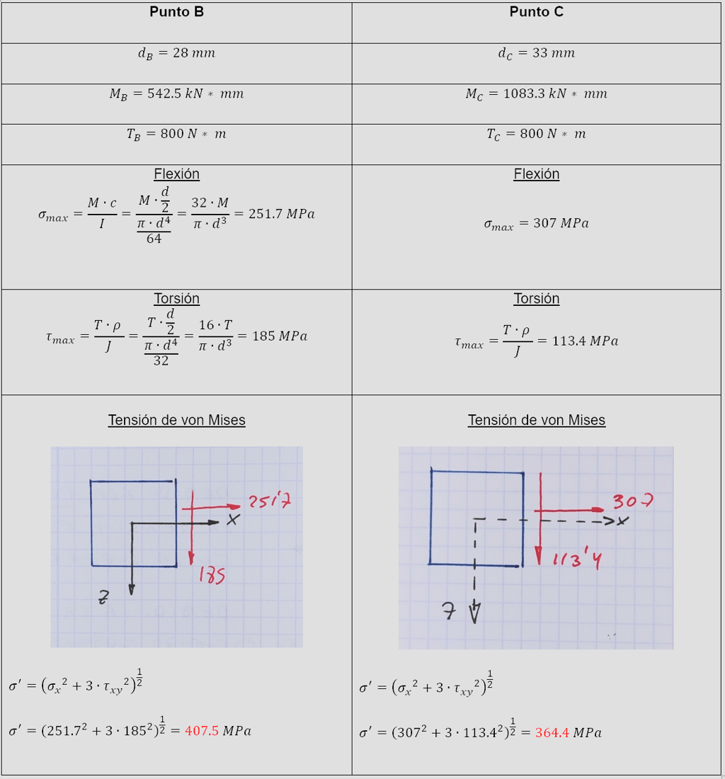 Vamos a estudiar el estado de tensiones en los puntos B y C en la periferia del eje y no en la línea neutra