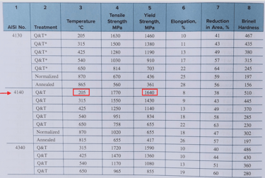 Eje de acero AISI 4140 (equivalencia europea 42CrMo4 según EN 10083) con tratamiento térmico a 200º C.