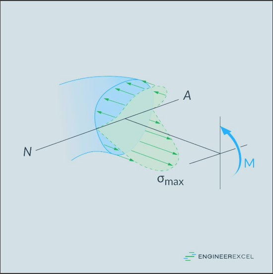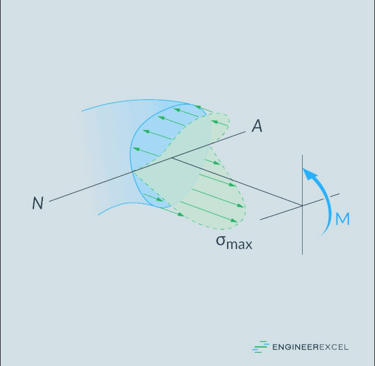 La tensión normal debido a la flexión es mayor en la periferia del eje y nula en la línea neutra.