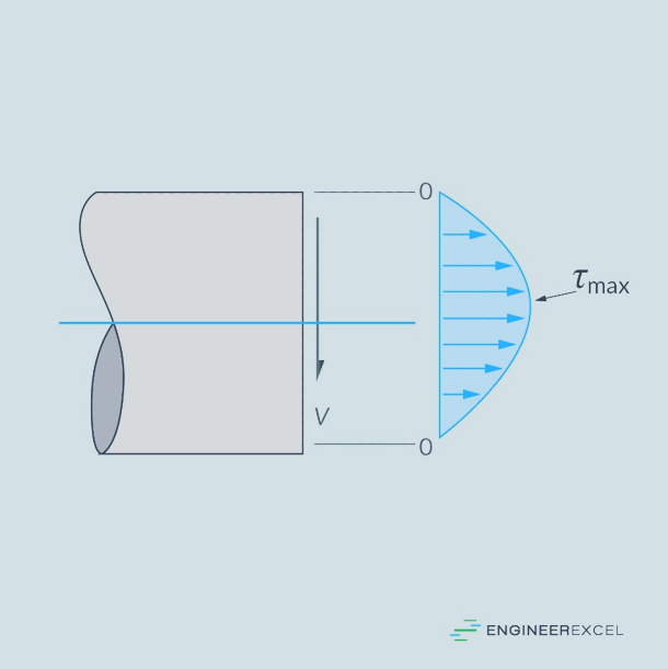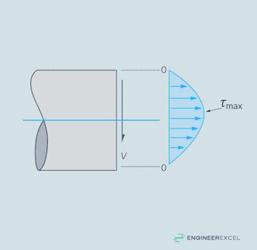 El esfuerzo cortante debido a la fuerza cortante es mayor en la línea neutra y nulo en la periferia